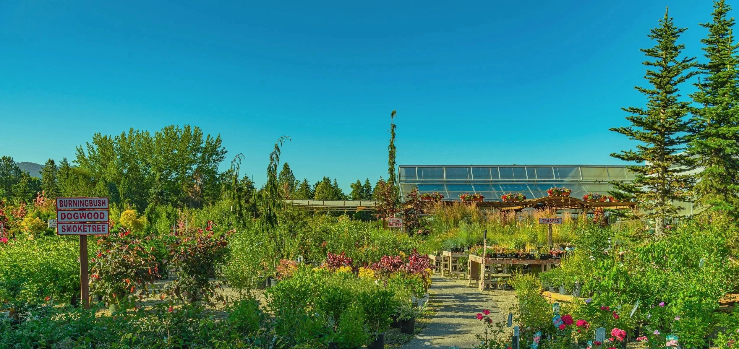 Evergreen and dwarf conifers, fruit trees, flowering shrubs, vines and berries, perennials and grasses, and native plants.